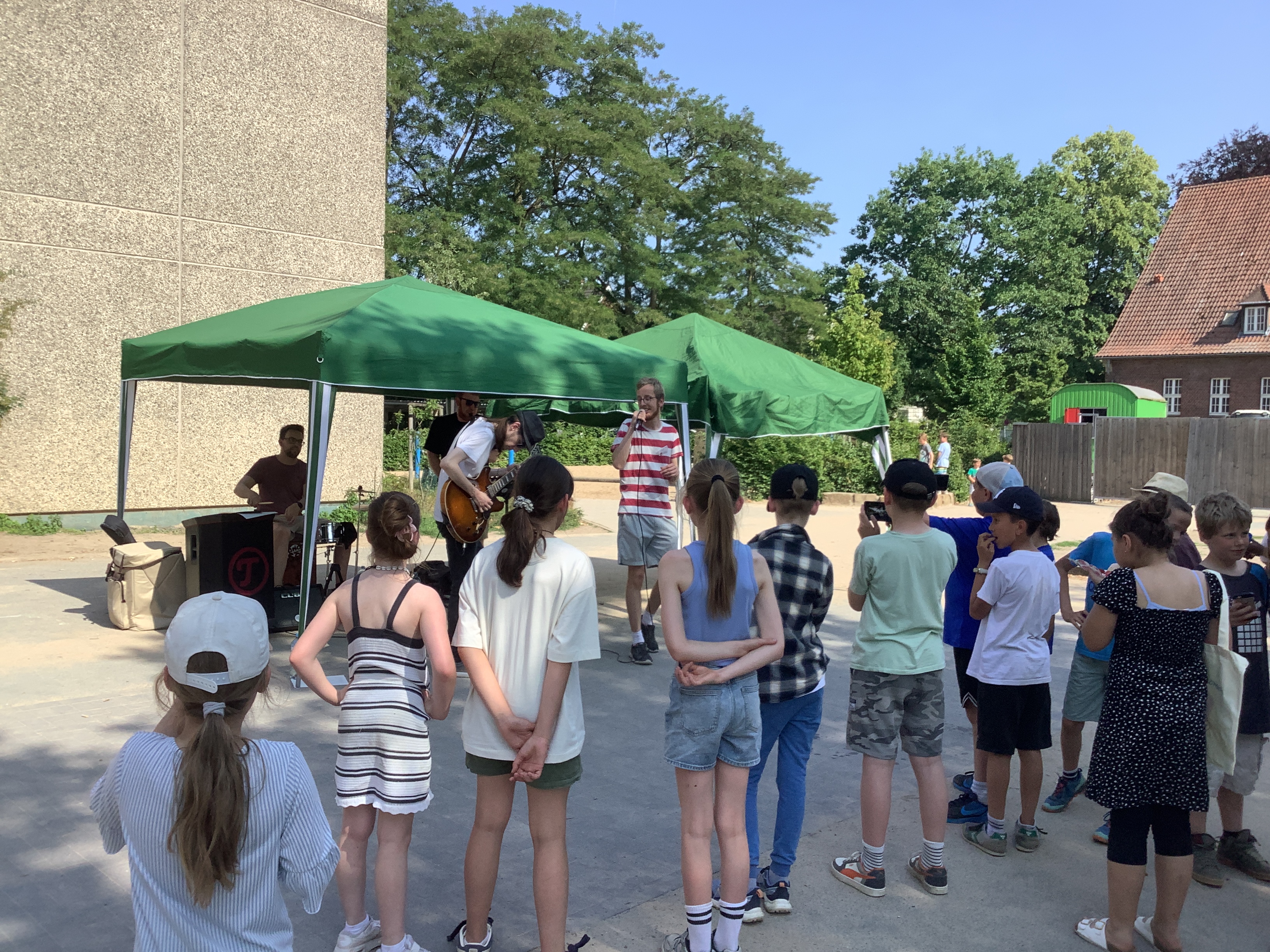 Am 13.6.2025 fand das diesjährige Erdbeerfest der Clemensschule statt. Ins Leben gerufen vor Jahren von Eltern für Eltern, und natürlich für die Clemenskinder der Schule. Monatelang vorher schon wurde geplant und organisiert, bis zum Schluss eine Veranstaltung stand, die alle begeisterte. Bei strahlendem Sonnenschein gab es einen tollen Auftritt der Chorkinder, mitreißende Tanzeinlagen, ein buntes Spielangebot einschließlich einer Hüpfburg, ein zu besichtigendes Feuerwehrauto und unglaublich viele leckere Angebote an der Cafeteria und am Grill. Der Auftritt von Herrn Wenzels Band „WITHOUT A DOUBT“, die für ein tolles Ambiente sorgte, kann man getrost als Highlight bezeichnen. Ein Lehrer mit einem so besonderen Talent, einfach großartig. Der Andrang beim Schreiben von Autogrammen war auf jeden Fall groß. Ein besonderer Dank gilt den Organisatoren im LehrerInnen- und Elternteam und dem Förderverein, die dieses tolle Fest auf die Beine stellten. Da dieses Fest jedes Jahr von einer vollen Helferliste lebt, freuen wir uns schon jetzt darauf, wenn nächstes Jahr viele, viele, viele Eltern mitmachen und sich wieder einbringen.