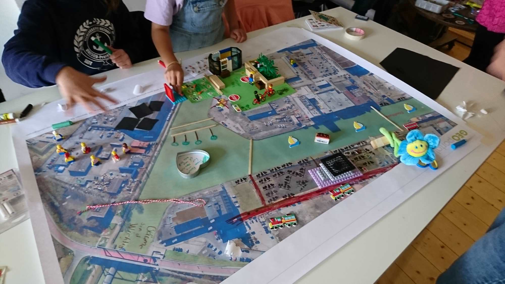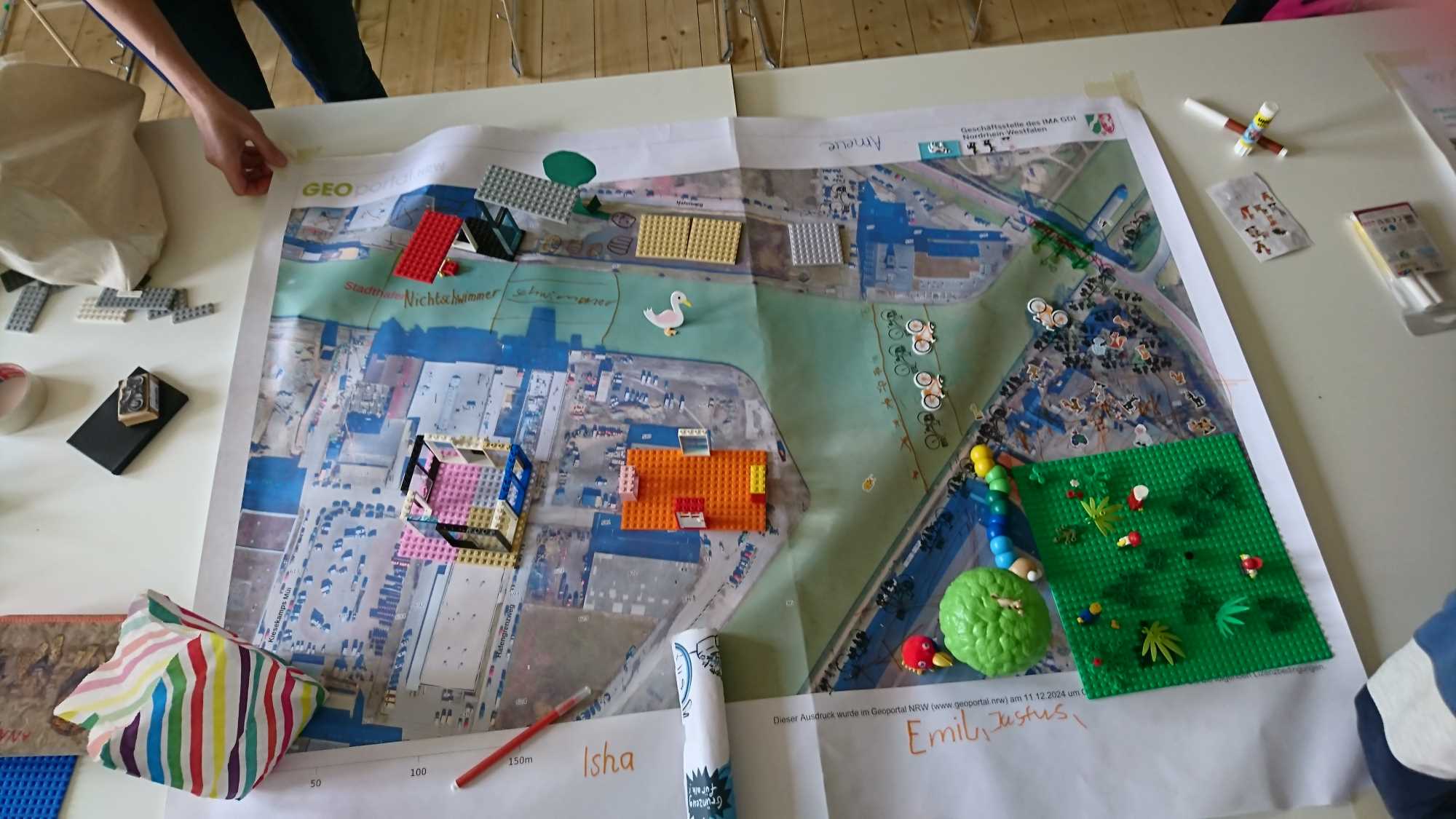 Auch dieses SDG 11 steht im Bezug zu den diesjährigen Projekttagen, die an der Clemensschule im Februar stattfanden. Das 11. Nachhaltigkeitsziel der UN befasst sich mit den Voraussetzungen, die bei Planung und Bau neuer Häuser in Stadt und Land in der Zukunft berücksichtigt werden müssen. Vor dem Hintergrund der dramatischen Klimaveränderungen muss dies neu gedacht werden. Unsere Städte und Wohnräume müssen lebenswert bleiben und zukunftsfähig gemacht werden. Was gilt es also zu bedenken, zu verändern? In der B-Side bot sich den UNESCO-Kindern der Clemensschule unter Anleitung von Yvonne Elling und Verena Meyer ein Rahmen, in dem die Kinder ihre ureigenen Vorstellungen bei der Planung eines nahen unbebauten Stadtgebietes auf einem dafür vorbereiteten, großformatigen Planes einbringen konnten. Die UNESCO-Kinder kamen mit großartigen Ideen und Vorwissen. Lehmbauweise, begrünte Fassaden, Solaranlagen und energieeffiziente Mobiliät, all das, und noch viel mehr fand Einzug in sehr ausgereiften individuellen Plänen, die in Kleingruppen erstellt wurden. Zur Verfügung standen unzählige Materialien wie Stöcke, Papiere, Aufkleber, Lego- und Playmobilfiguren, die zur Gestaltung der Baupläne herangezogen werden konnten und beeindruckende Ergebnisse erzielten. Besonders spannend war dann der Moment, in dem die einzelnen Gruppen ihre sehr überzeugenden Ideen erklärten und präsentierten. Mit einer zusammenfassenden Listung, was unbedingt in einer Stadt der Zukunft Beachtung finden sollte und was überhaupt nicht darin erwünscht ist, verabschiedeten sich die UNESCO-Kids nach einem kurzweiligen und sehr wertvollen Vormittag von den beiden sehr zugewandten Anleiterinnen und dürfen sich darauf freuen, das Ganze in der UNESCO-AG mit einem von der Lehrerin bestellten Materialkoffer ABENTEUER BAUEN zu dem Thema (www.eineweltinderschule@uni-bremen.de ) noch ein wenig zu vertiefen.