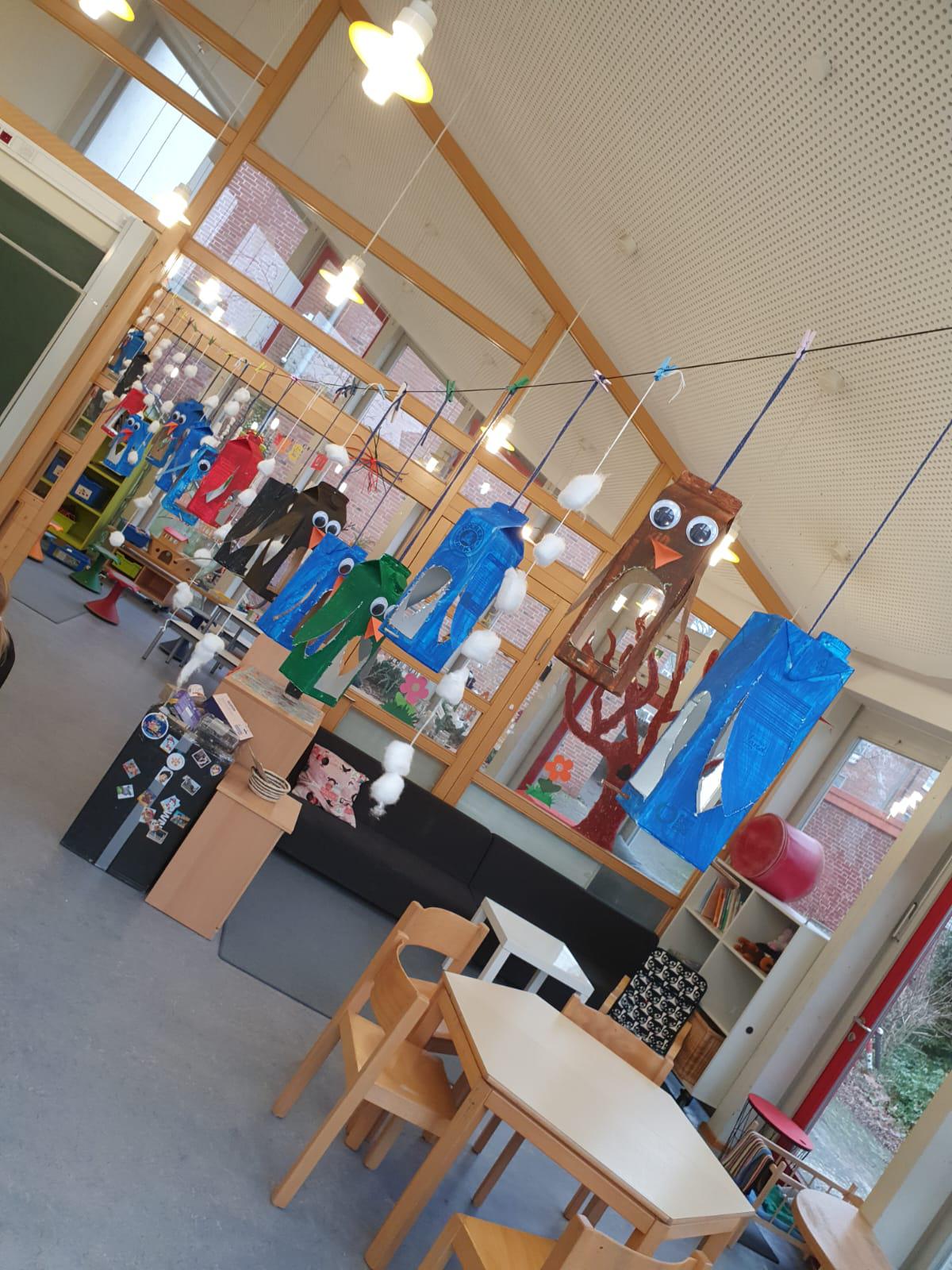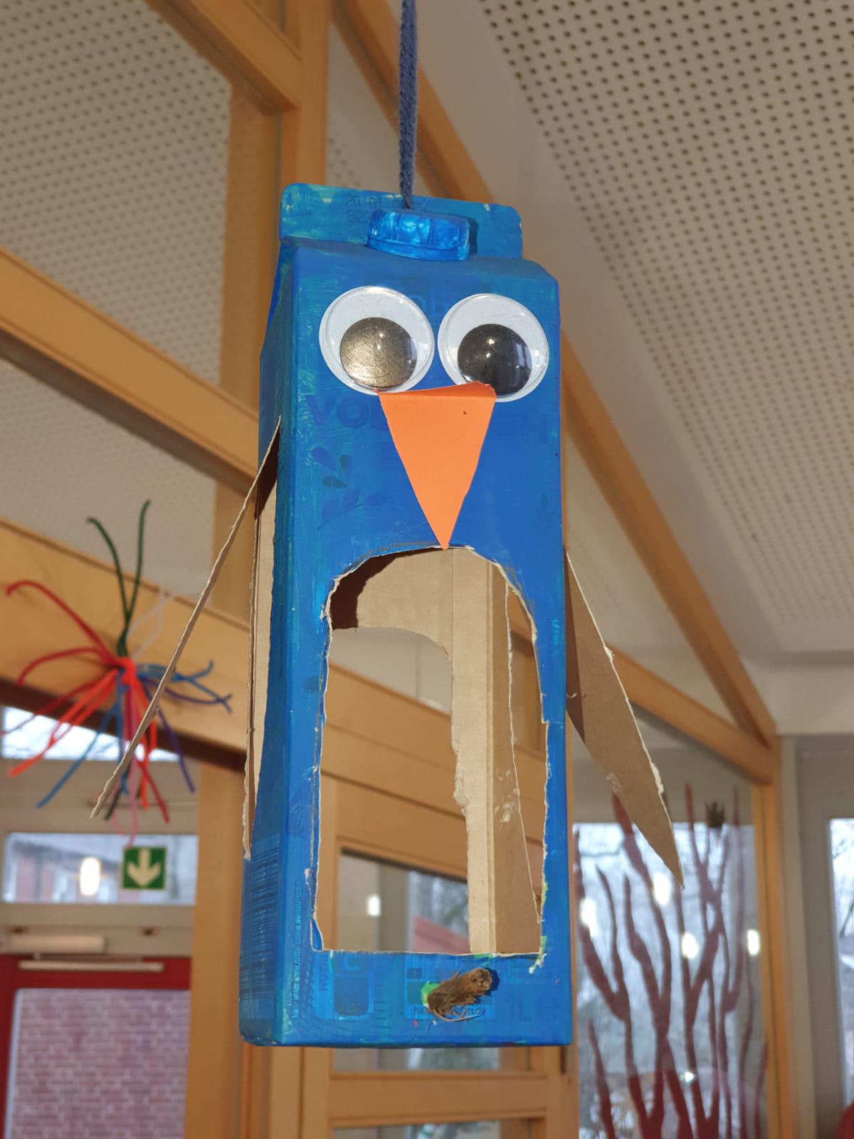 UPCYCLING heißt, dass einem eigentlich ausgedienten Gegenstand ein zweites Leben eingehaucht wird. Im Sinne nachhaltiger Ideen an unserer Schule entstanden zauberhafte und lustige Wintervögel aus ausrangierten Milchtüten. Bestaunen könnt ihr sie in der roten Gruppe.